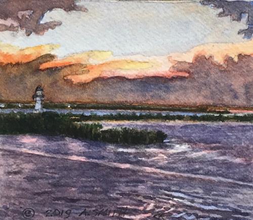 4 2/8 x 3 5/8" This was from my miniature cruise series painted on the ship