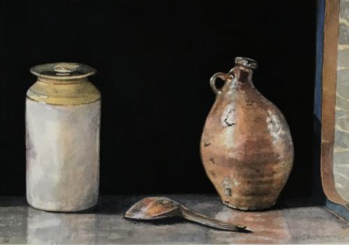 Description: These wonderful antiques were from the kitchen at Stratford Hall, VA. I had to paint the jug because it was just so different.