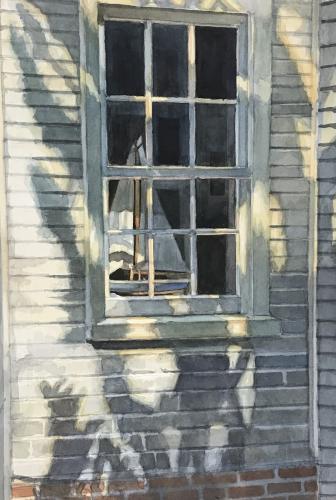 Description: This is a quiet painting featuring cool shadows. The boat makes you think of sailing and warm summer days.