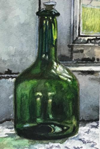 Description: I love green glass! Painting glass so can see through it is a challenge.