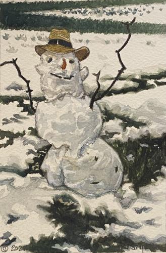 Description: Thank you to the Wardells for the use of their photo. These impressive young 80 year olds built a snowman! He is leaning a bit but pretty cute.