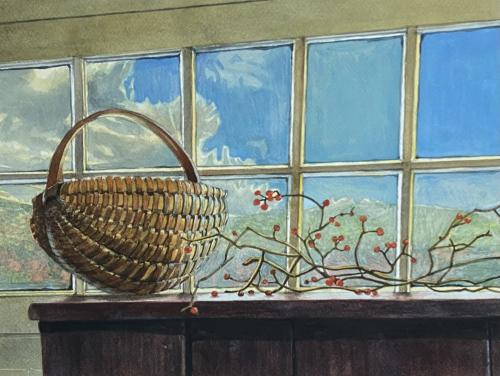 I enjoy making objects look real and I think I did that with this basket. There is this warm feeling inside while outside is sunny with blue skies.