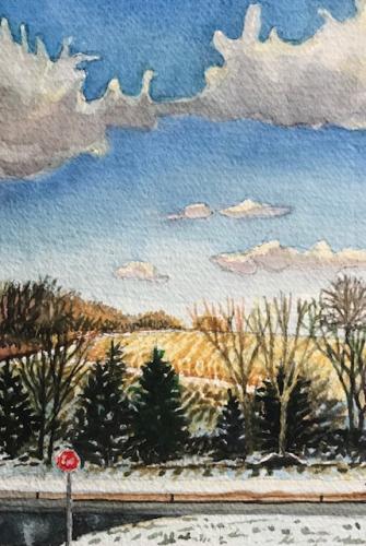 Description: This winter scene was from outside the surgery center where Linda had her hip replacement. Its in Limerick, PA It snowed the morning I took her in and I worked on this while I was waiting.